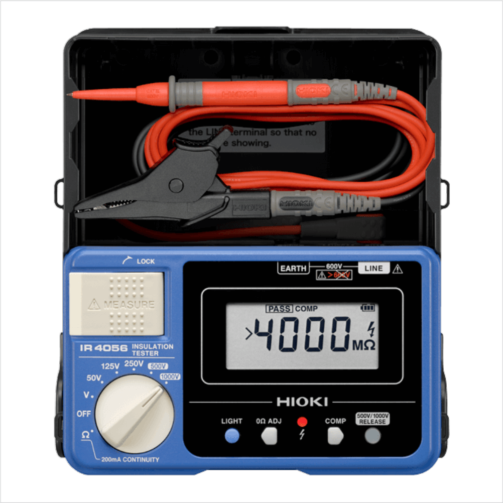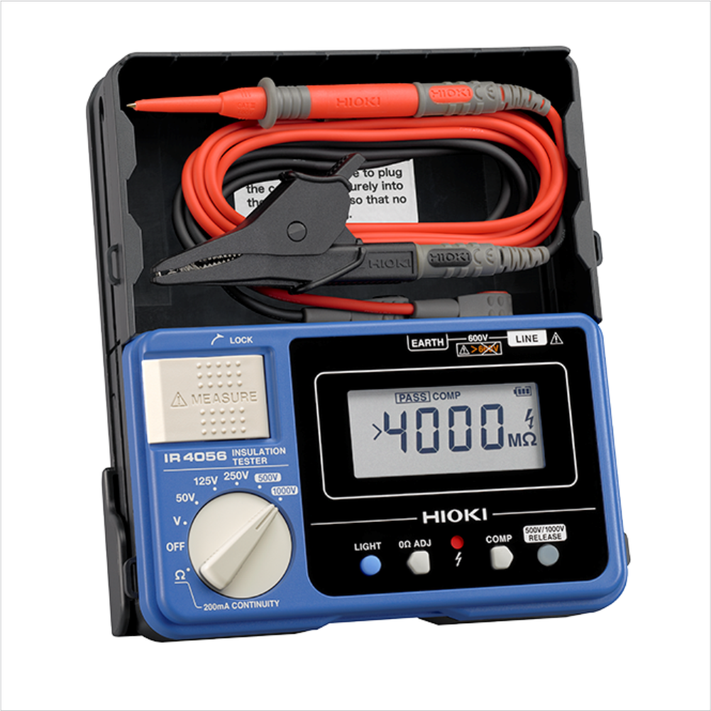 For checking the continuity of ground wiring, 10 Ω (0.01 Ω resolution) to 1000 Ω (1 Ω resolution), 3 ranges, Basic accuracy: ±3 % rdg. ±2 dgt., testing current 200 mA or more (at 6 Ω or less)